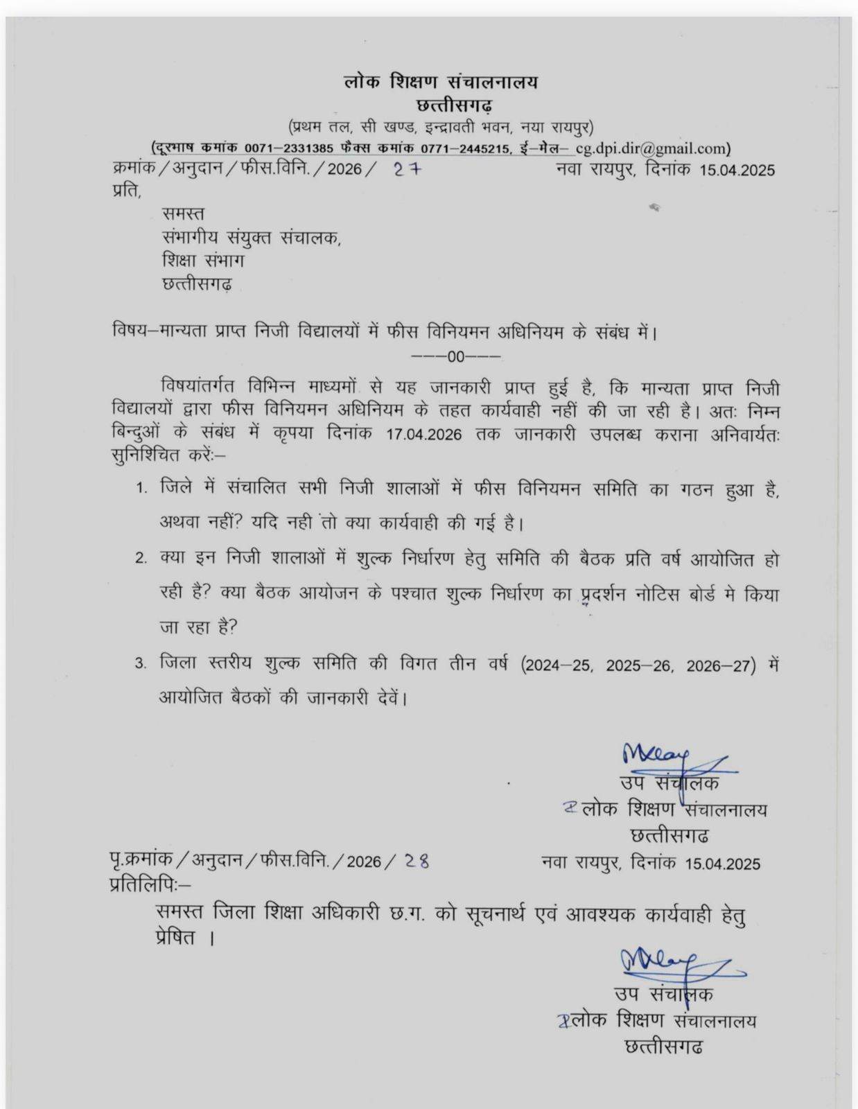 रायपुर: राजधानी रायपुर सहित पूरे प्रदेश में निजी स्कूलों की मनमानी फीस और महंगी किताबों की जबरन बिक्री पर स्कूल शिक्षा विभाग ने सख्त रुख अपना लिया है। शिक्षा विभाग ने सभी संभागों को कड़े निर्देश जारी करते हुए निजी स्कूलों से पिछले तीन साल की फीस की विस्तृत रिपोर्ट तलब की है। नियमों की अनदेखी और अभिभावकों से आर्थिक लूट करने वाले स्कूल संचालकों के खिलाफ अब सीधे FIR दर्ज की जाएगी।