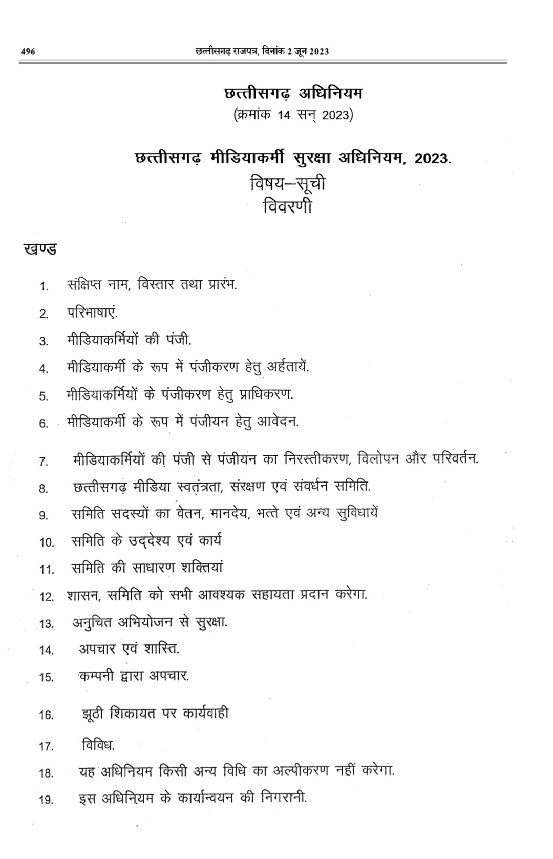 रायपुर: छत्तीसगढ़ के पत्रकार जगत के लिए आज एक ऐतिहासिक दिन है। राज्य सरकार ने बहुप्रतीक्षित ‘छत्तीसगढ़ मीडिया कर्मी सुरक्षा कानून’ को आधिकारिक रूप से लागू कर दिया है। इसी के साथ छत्तीसगढ़, पत्रकारों की सुरक्षा के लिए विशेष कानून बनाने वाले देश के चुनिंदा राज्यों की श्रेणी में शामिल हो गया है