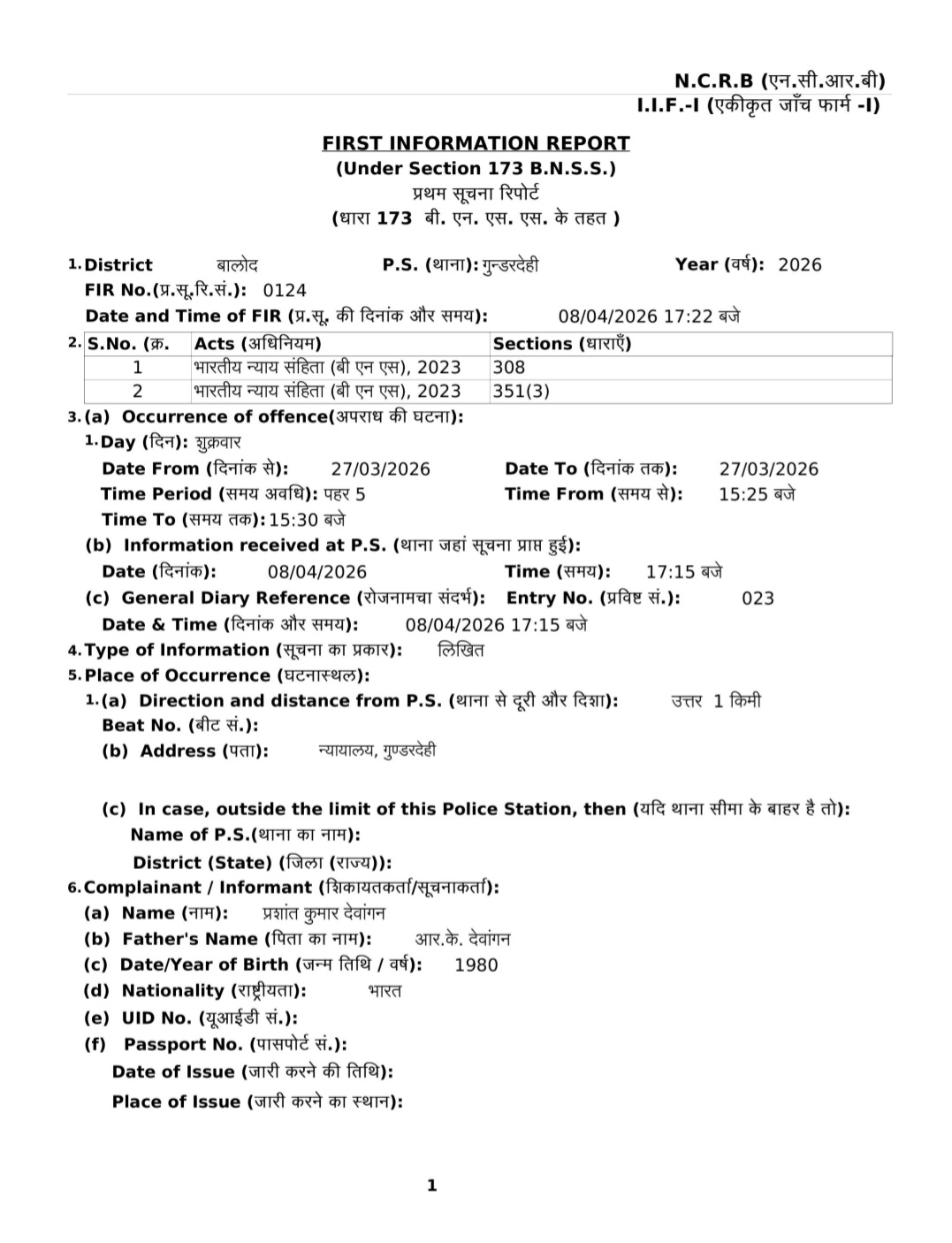 मजिस्ट्रेट प्रशांत कुमार देवांगन ने इस गंभीर मामले की शिकायत तत्काल गुंडरदेही थाने में की है। पुलिस ने मामले की संवेदनशीलता को देखते हुए अज्ञात आरोपी के खिलाफ FIR दर्ज कर ली है।